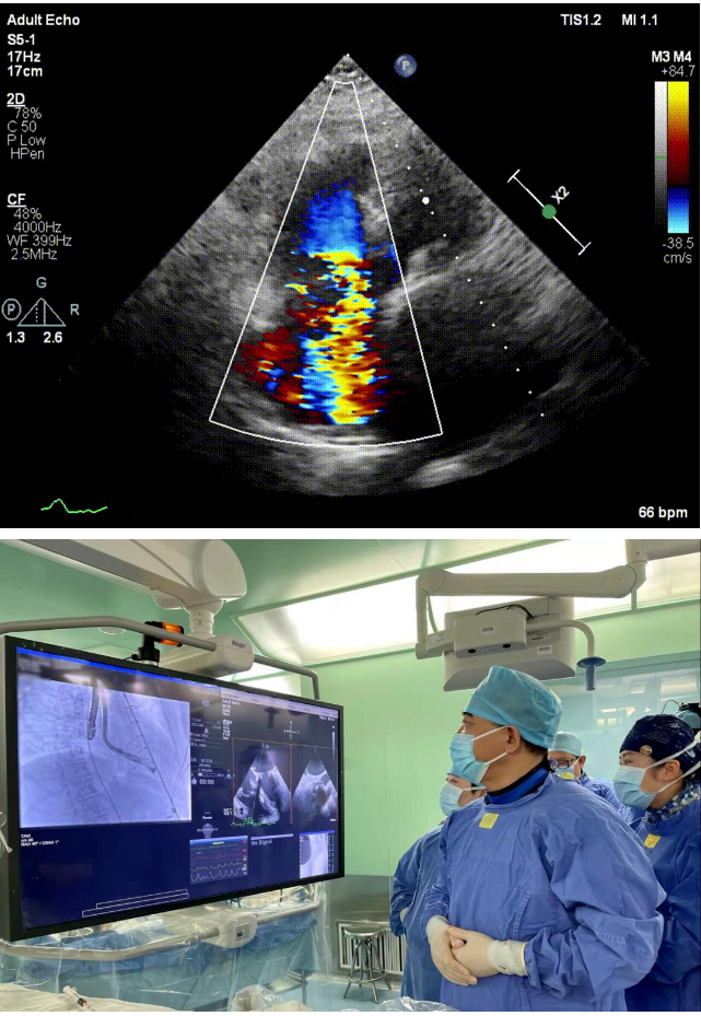 本次接受治療的患者是一名74歲的女性,14年前因風濕性心臟病行二尖瓣生物瓣植入術,合并房顫。近3年來反復因腹脹、納差、下肢水腫入院,藥物治療欠佳。心臟超聲顯示三尖瓣極重度反流(有效反流口面積:0.76cm²,反流容積:79ml),繼發性右房室增大及上、下腔靜脈增寬(右房上下徑*左右徑:52*41mm,右室左右徑:46mm,下腔靜脈:29mm),右室收縮功能正常,肺動脈收縮壓 43mmHg,左心室射血分數73% ?;颊呒韧_胸手術史,術前評估STS 評分為7.02分,CRS 9分,無法接受體外循環下三尖瓣外科手術。面對這一傳統治療無法解決的困境,葛均波院士及其團隊周達新教授、潘文志教授、張源博士、陳莎莎博士及心超室的潘翠珍教授、李偉教授經過討論決定,采用創新的Lux-Valve Plus系統為患者進行經血管三尖瓣置換。