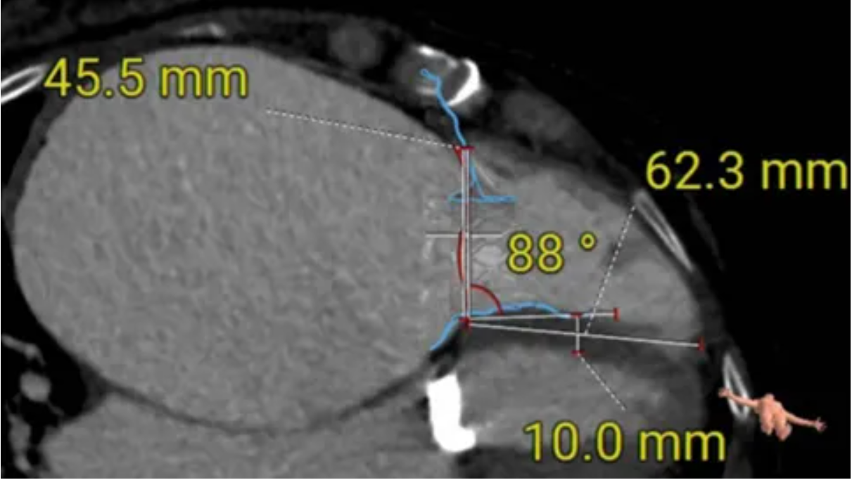 術前CT測量:三尖瓣瓣環最大徑53.9mm,周長平均徑49mm,瓣環顯著擴張。