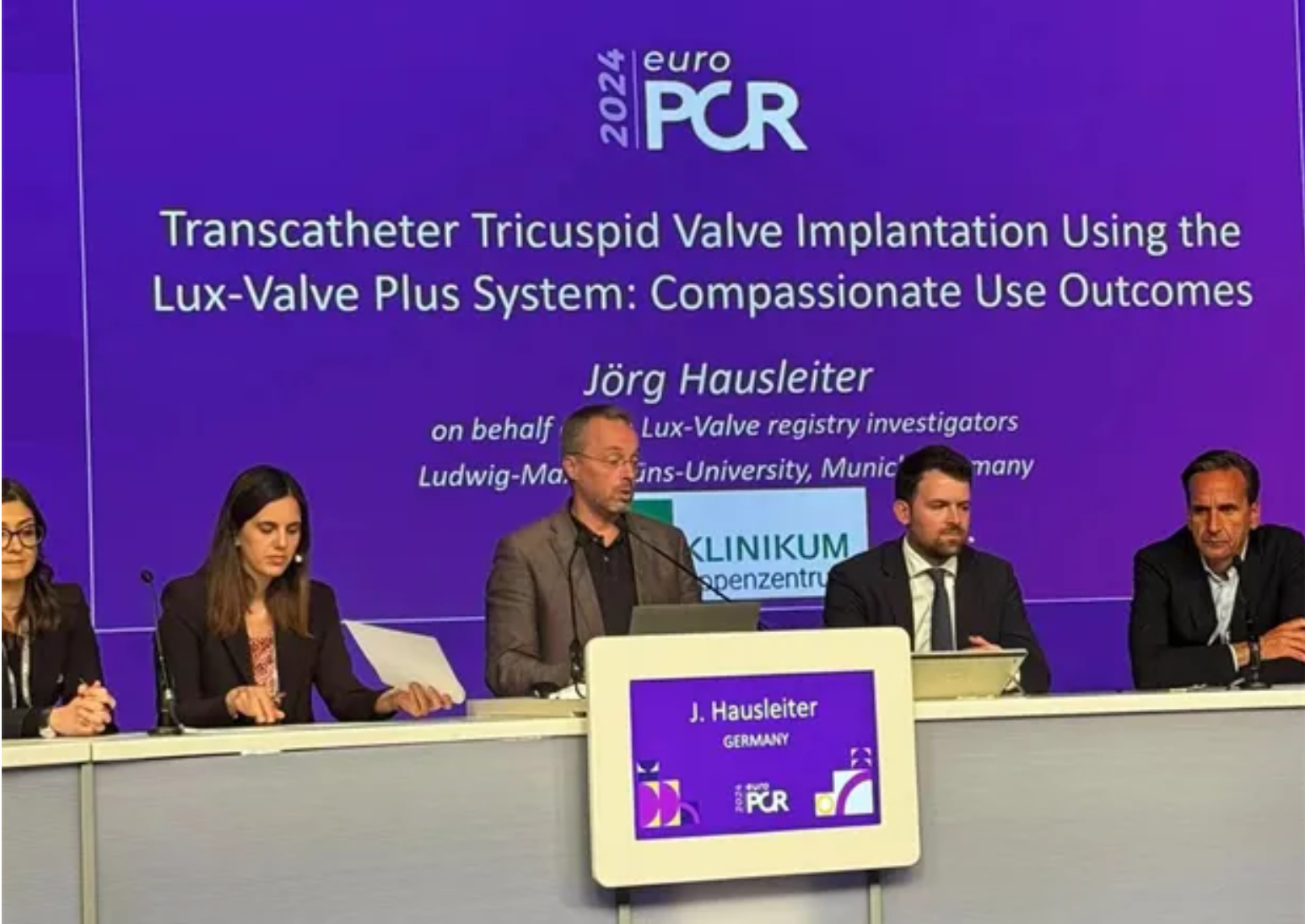 LuX-Valve Plus在全球多中心開展的救治臨床數據由來自德國慕尼黑路德維希·馬克西米利安大學醫院(Klinikum der Ludwig-Maximilians-Universität München, Munich, Germany)的Jörg Hausleiter教授于2024歐洲介入心臟病學大會(EuroPCR 2024)上發布,并隨后在紐約瓣膜會上多次獲得贊揚。研究結果表示經頸靜脈入路的LuX-Valve Plus三尖瓣介入置換系統是安全的,并且能夠有效降低反流等級。