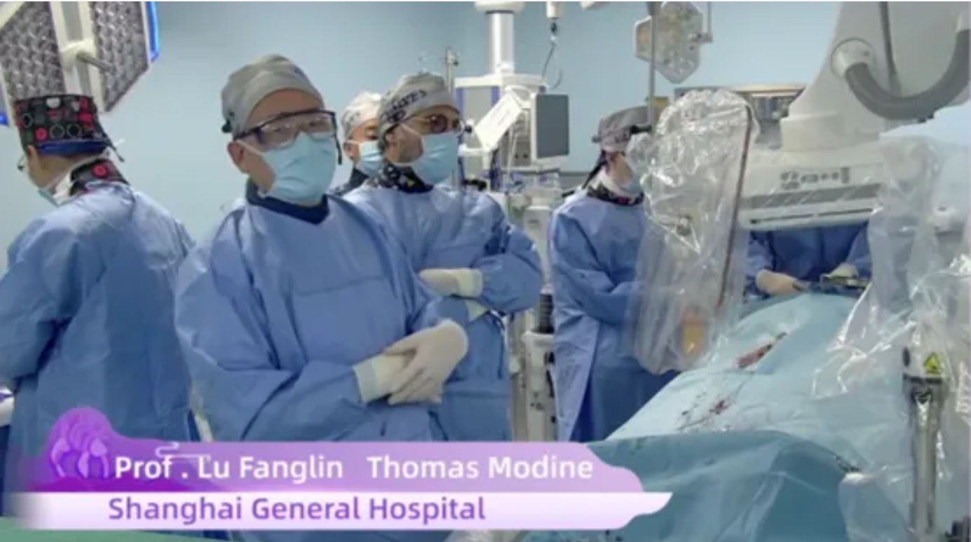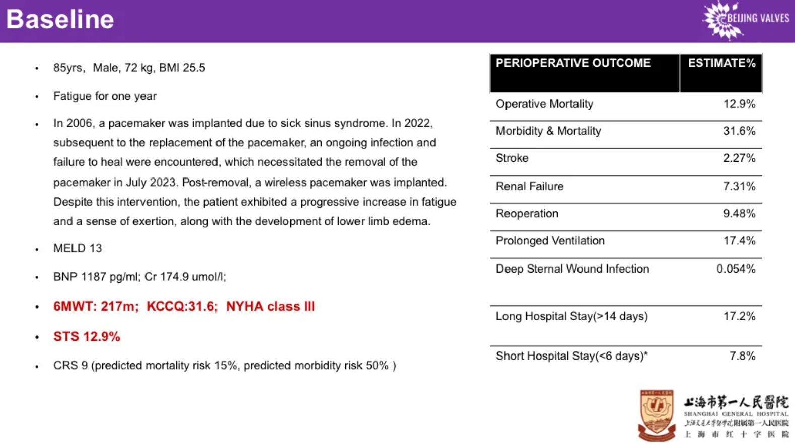 ● 中歐攜手,全球視野,下午半場的首輪直播,來自法國波爾多里爾大學中心醫(yī)院的Thomas Modine教授與來自上海市第一人民醫(yī)院的陸方林教授,攜手LuX-Valve Plus,共同完成一臺極高外科風險、解剖結(jié)構(gòu)復雜的經(jīng)頸靜脈三尖瓣介入置換手術(shù)。陸方林教授介紹,該例患者身體基礎(chǔ)情況較差,STS評分達12.9%,屬于外科極高危手術(shù),無法進行傳統(tǒng)外科手術(shù)治療,且存在起搏器導線感染拔除病史,對三尖瓣瓣葉造成無法逆轉(zhuǎn)的醫(yī)源性損傷,瓣葉脫落、腱索斷裂,已無法進行三尖瓣緣對緣修復。結(jié)合MDT團隊討論與海外專家溝通交流,手術(shù)團隊計劃使用30-55型號LuX-Valve Plus瓣膜完成本次手術(shù)。