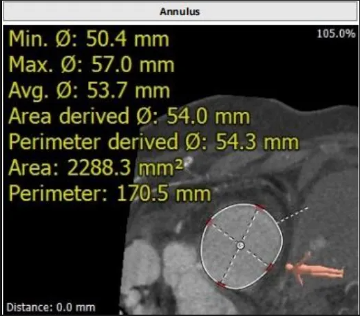 三尖瓣環平均周長徑54.3mm,最大直徑57mm